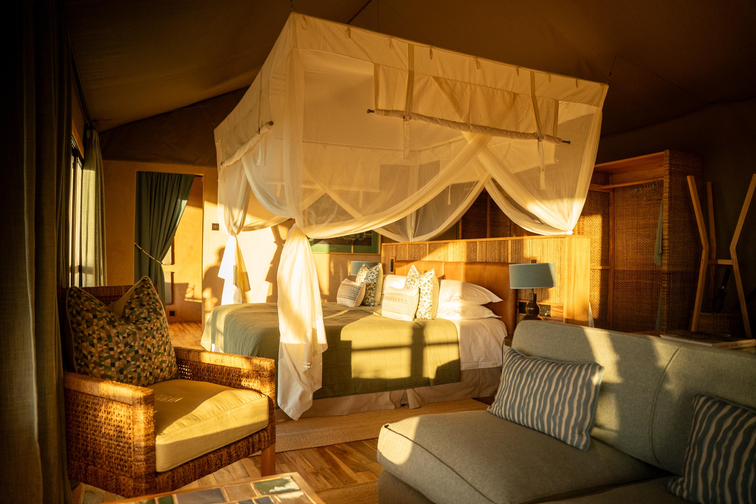 The central lodge area includes a dining space and lounge, both open to the forest, where the sounds of Budongo are a constant presence. Evenings here are calm and grounded—best spent reflecting on the day’s sightings with the forest settling around you.