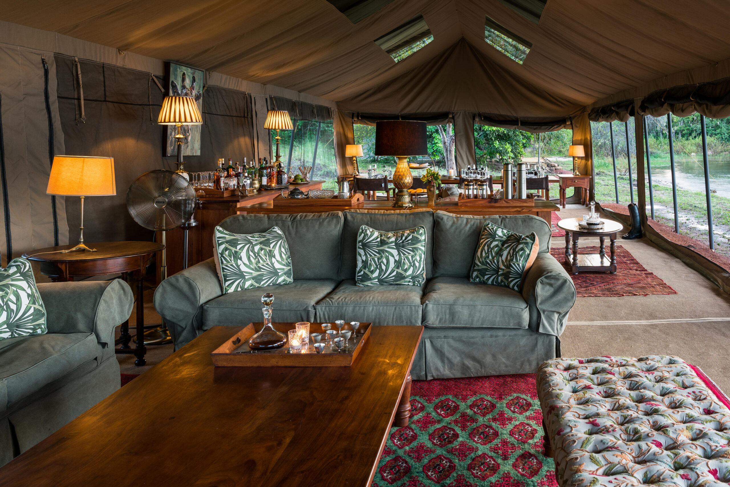There is a spacious, breezy mess tent filled with inviting sofas and comfortable sitting areas, a bar and communal dining table. Enjoy views over the hippo pool whilst enjoying a sundowner by the rustic fire pit.
